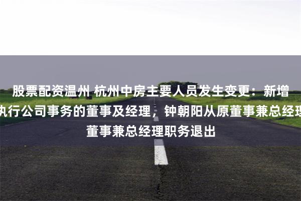 股票配资温州 杭州中房主要人员发生变更:新增章晓军为执行公司事务的董事及经理,钟朝阳从原董事兼总经理职务退出