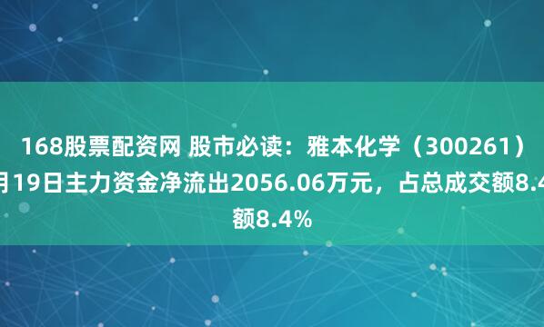 168股票配资网 股市必读:雅本化学(300261)5月19日主力资金净流出2056.06万元,占总成交额8.4%