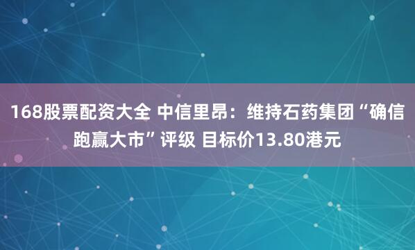 168股票配资大全 中信里昂:维持石药集团“确信跑赢大市”评级 目标价13.80港元