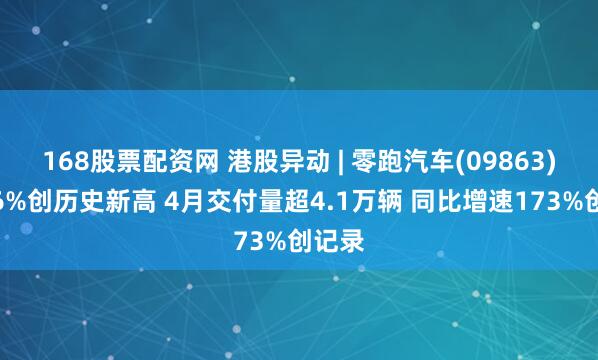 168股票配资网 港股异动 | 零跑汽车(09863)涨超6%创历史新高 4月交付量超4.1万辆 同比增速173%创记录