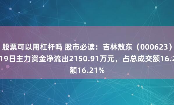 股票可以用杠杆吗 股市必读:吉林敖东(000623)5月19日主力资金净流出2150.91万元,占总成交额16.21%