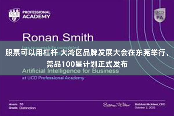 股票可以用杠杆 大湾区品牌发展大会在东莞举行,莞品100星计划正式发布