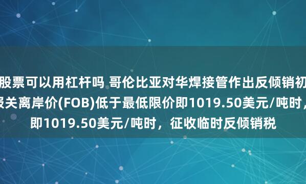 股票可以用杠杆吗 哥伦比亚对华焊接管作出反倾销初裁:当涉案产品的报关离岸价(FOB)低于最低限价即1019.50美元/吨时,征收临时反倾销税