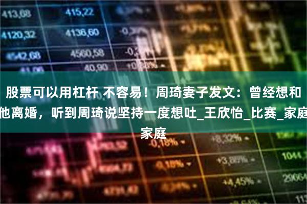 股票可以用杠杆 不容易!周琦妻子发文:曾经想和他离婚,听到周琦说坚持一度想吐_王欣怡_比赛_家庭