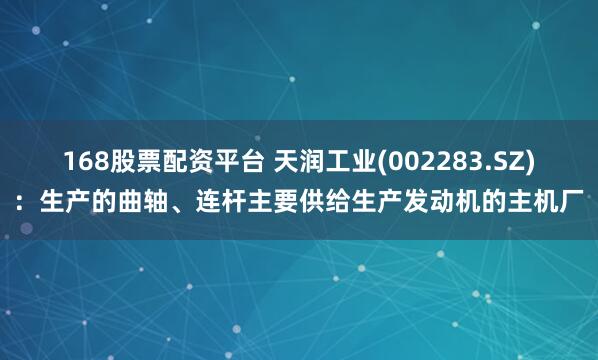 168股票配资平台 天润工业(002283.SZ):生产的曲轴、连杆主要供给生产发动机的主机厂