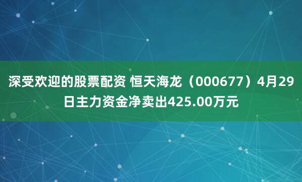 深受欢迎的股票配资 恒天海龙(000677)4月29日主力资金净卖出425.00万元