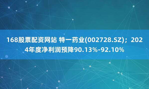 168股票配资网站 特一药业(002728.SZ);2024年度净利润预降90.13%-92.10%