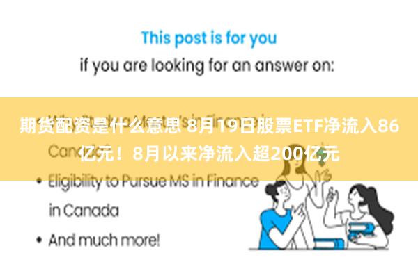 期货配资是什么意思 8月19日股票ETF净流入86亿元!8月以来净流入超200亿元