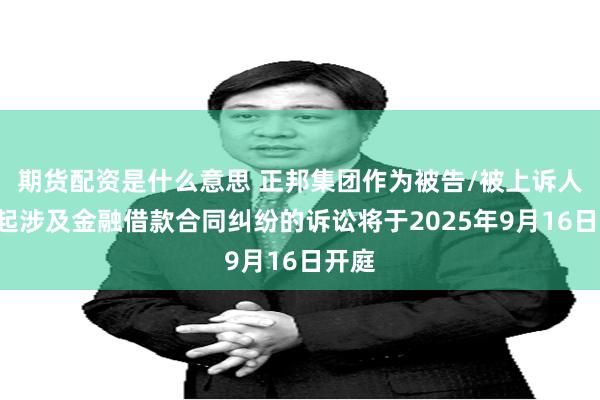 期货配资是什么意思 正邦集团作为被告/被上诉人的1起涉及金融借款合同纠纷的诉讼将于2025年9月16日开庭