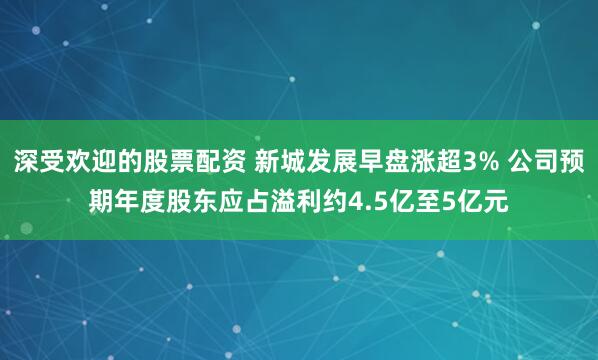 深受欢迎的股票配资 新城发展早盘涨超3% 公司预期年度股东应占溢利约4.5亿至5亿元