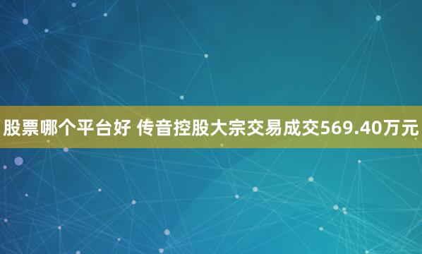 股票哪个平台好 传音控股大宗交易成交569.40万元