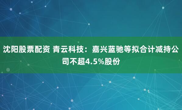 沈阳股票配资 青云科技:嘉兴蓝驰等拟合计减持公司不超4.5%股份