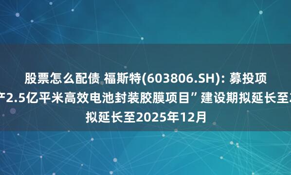 股票怎么配债 福斯特(603806.SH): 募投项目“越南年产2.5亿平米高效电池封装胶膜项目”建设期拟延长至2025年12月