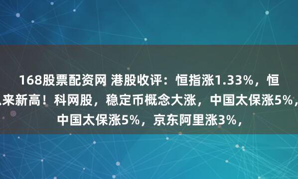 168股票配资网 港股收评:恒指涨1.33%,恒生科技刷新4月以来新高!科网股,稳定币概念大涨,中国太保涨5%,京东阿里涨3%,