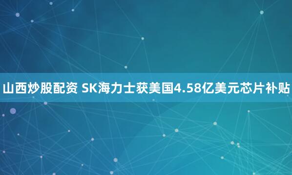 山西炒股配资 SK海力士获美国4.58亿美元芯片补贴