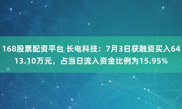 168股票配资平台 长电科技:7月3日获融资买入6413.10万元,占当日流入资金比例为15.95%