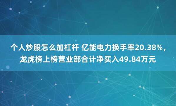 个人炒股怎么加杠杆 亿能电力换手率20.38%,龙虎榜上榜营业部合计净买入49.84万元