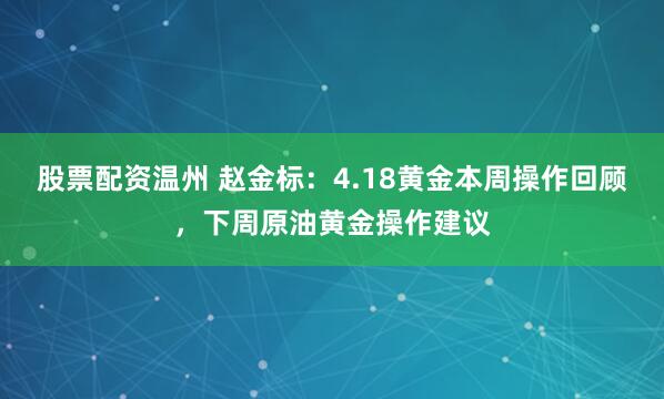 股票配资温州 赵金标:4.18黄金本周操作回顾,下周原油黄金操作建议