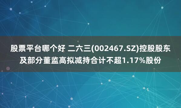 股票平台哪个好 二六三(002467.SZ)控股股东及部分董监高拟减持合计不超1.17%股份