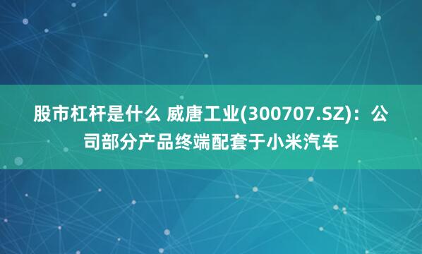 股市杠杆是什么 威唐工业(300707.SZ):公司部分产品终端配套于小米汽车
