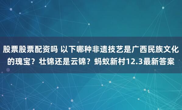 股票股票配资吗 以下哪种非遗技艺是广西民族文化的瑰宝?壮锦还是云锦?蚂蚁新村12.3最新答案