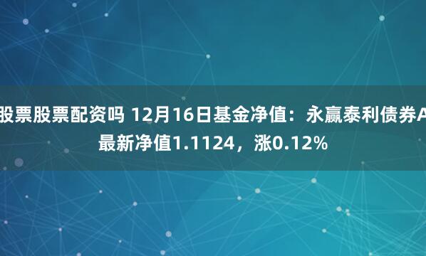 股票股票配资吗 12月16日基金净值:永赢泰利债券A最新净值1.1124,涨0.12%