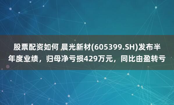 股票配资如何 晨光新材(605399.SH)发布半年度业绩,归母净亏损429万元,同比由盈转亏