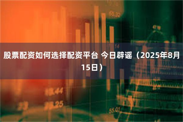 股票配资如何选择配资平台 今日辟谣(2025年8月15日)