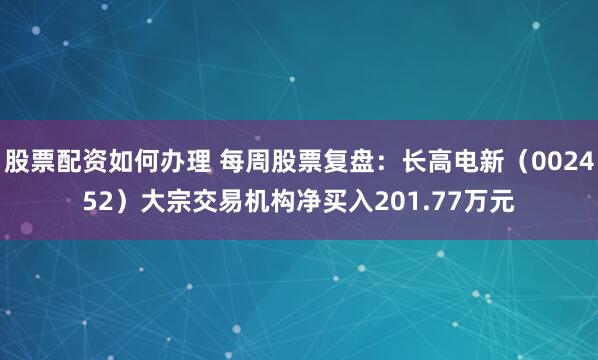 股票配资如何办理 每周股票复盘:长高电新(002452)大宗交易机构净买入201.77万元