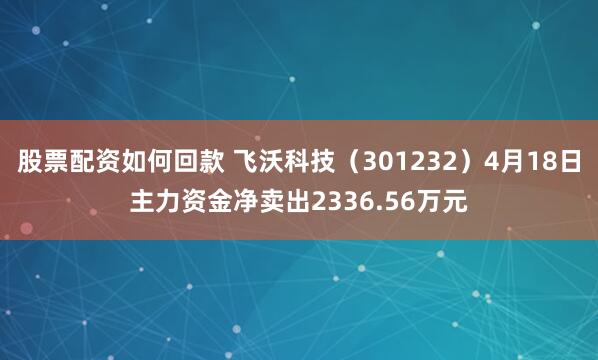 股票配资如何回款 飞沃科技(301232)4月18日主力资金净卖出2336.56万元