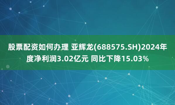 股票配资如何办理 亚辉龙(688575.SH)2024年度净利润3.02亿元 同比下降15.03%