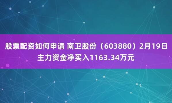 股票配资如何申请 南卫股份(603880)2月19日主力资金净买入1163.34万元