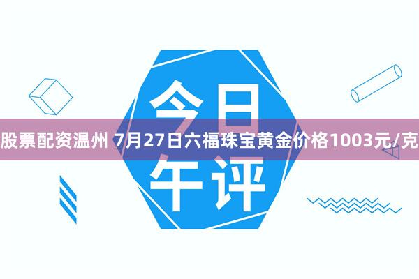 股票配资温州 7月27日六福珠宝黄金价格1003元/克