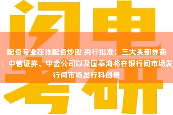 配资专业在线配资炒股 央行批准!三大头部券商,大动作:中信证券、中金公司以及国泰海将在银行间市场发行科创债