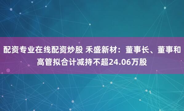 配资专业在线配资炒股 禾盛新材:董事长、董事和高管拟合计减持不超24.06万股