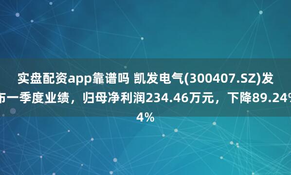 实盘配资app靠谱吗 凯发电气(300407.SZ)发布一季度业绩,归母净利润234.46万元,下降89.24%