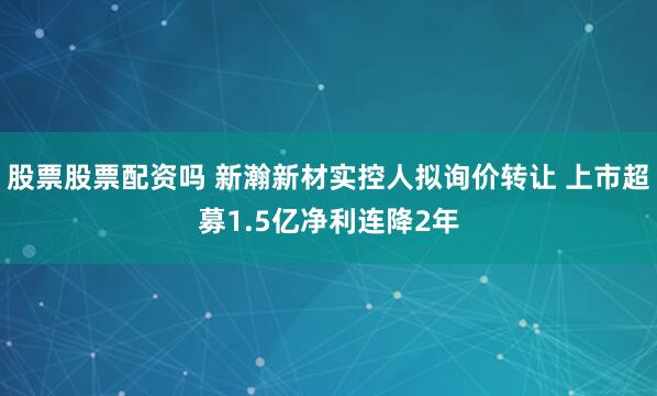 股票股票配资吗 新瀚新材实控人拟询价转让 上市超募1.5亿净利连降2年