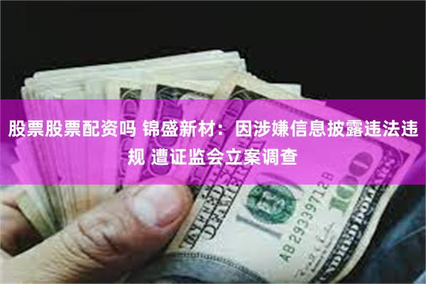 股票股票配资吗 锦盛新材:因涉嫌信息披露违法违规 遭证监会立案调查
