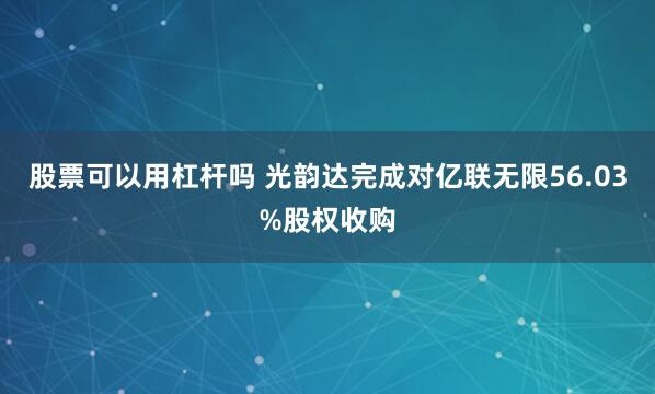 股票可以用杠杆吗 光韵达完成对亿联无限56.03%股权收购