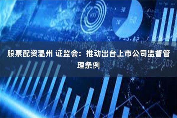 股票配资温州 证监会:推动出台上市公司监督管理条例