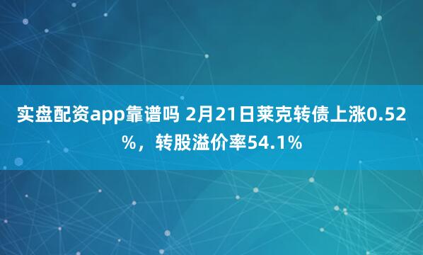 实盘配资app靠谱吗 2月21日莱克转债上涨0.52%,转股溢价率54.1%