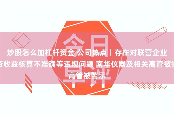 炒股怎么加杠杆资金 公司热点|存在对联营企业投资收益核算不准确等违规问题 南华仪器及相关高管被警示