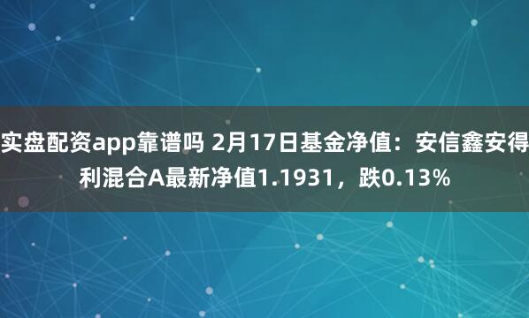 实盘配资app靠谱吗 2月17日基金净值:安信鑫安得利混合A最新净值1.1931,跌0.13%