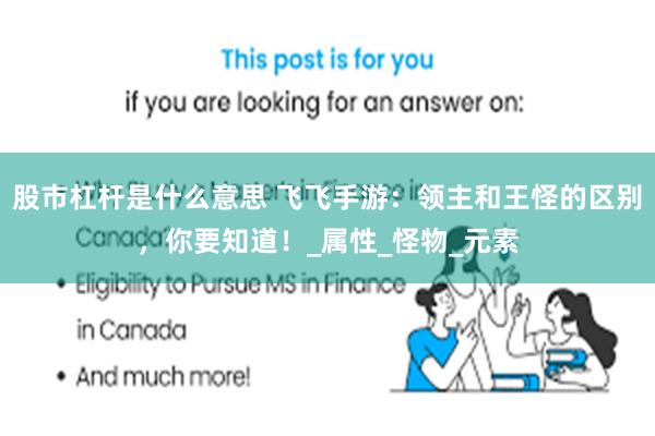 股市杠杆是什么意思 飞飞手游:领主和王怪的区别,你要知道!_属性_怪物_元素