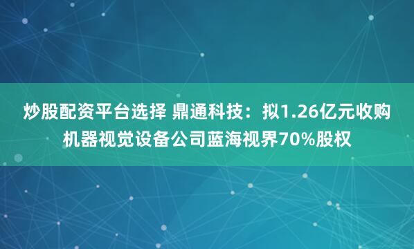炒股配资平台选择 鼎通科技:拟1.26亿元收购机器视觉设备公司蓝海视界70%股权