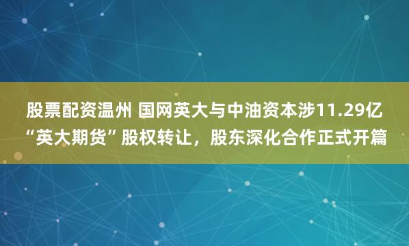 股票配资温州 国网英大与中油资本涉11.29亿“英大期货”股权转让,股东深化合作正式开篇